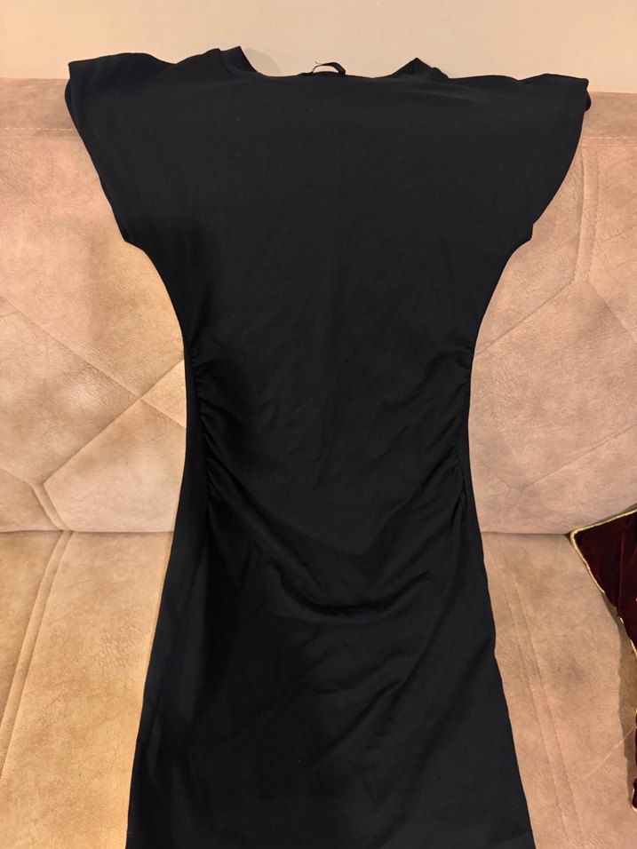 Drapeli Siyah V Yakalı elbise midi boy
