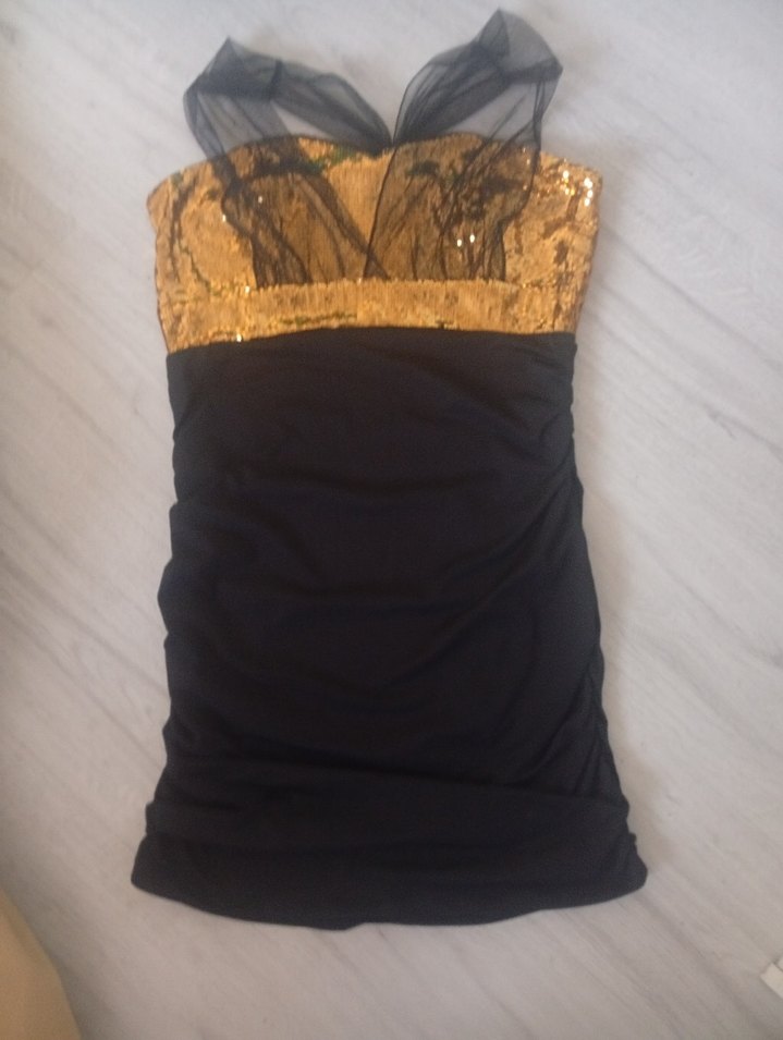 Drapeli straplez yaka, siyah etekli altın renk ayarlanabilir boy elbise. Fitted kesimiyle göz alıcı ve cesur parti tarzı sunar. ✨Göğüs kısmı geniş 42-44 bedene kadar rahat giyilir geniş gelir ise payetli olduğu için daraltılabilir belli olmaz.