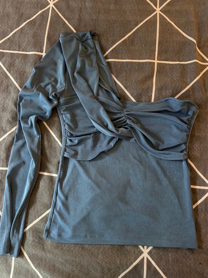 Drapeli Straplez Uzun Kollu Gri Bluz