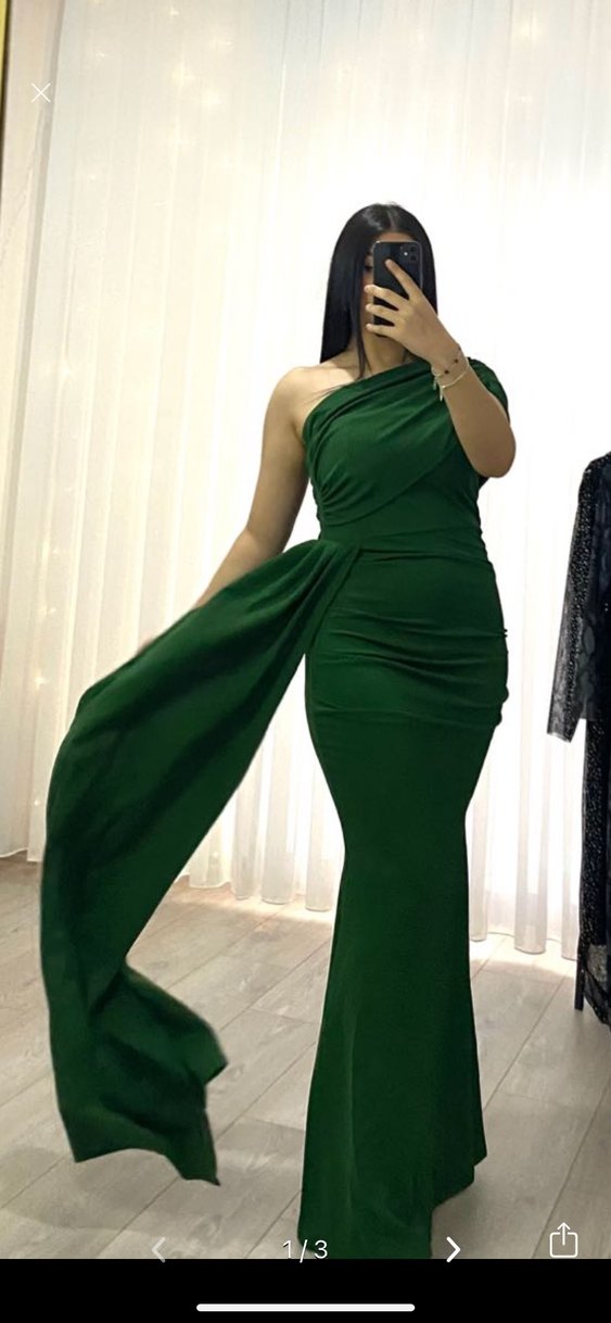 Drapeli ve straplez yaka detaylı, uzun ve vücuda oturan yeşil abiye elbise. Parlak kumaşı ve çağdaş stiliyle göz alıcı bir şıklık sunar. ✨(38-40 bedene uygun esnek kumaş)