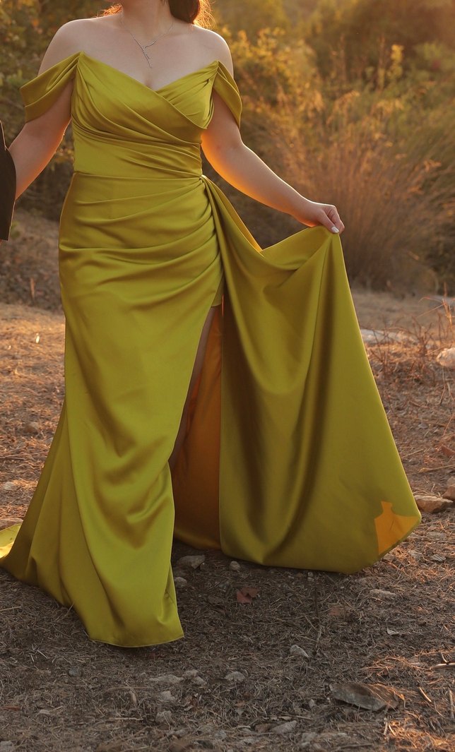 İlmio yağ yeşili abiye.38 beden üzerime tam oturduğu için 40 beden alıp sırttan daraltma işlemi yapıldı. İçinde astarı var. Boyum 1.58 kilom 64. Sadece nişanımda kullandım. Dış çekimden sonra kuru temizleme yapıldı.