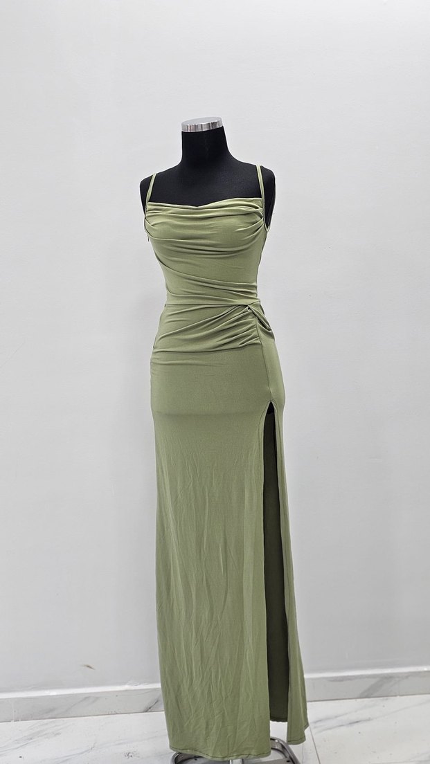 Drapeli Uzun Askılı Kadın Abiye Elbise