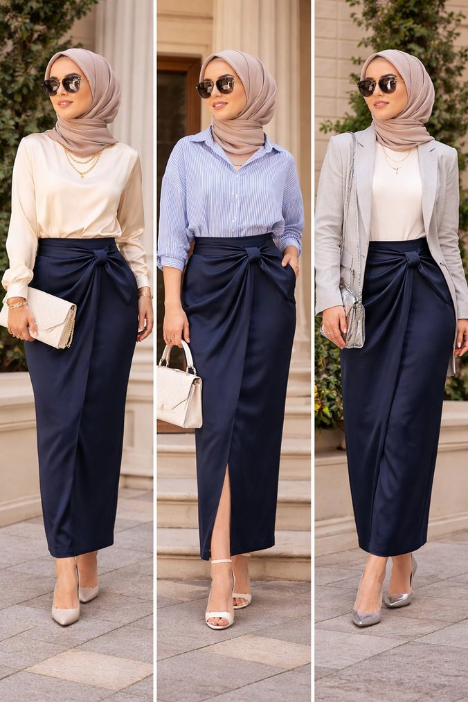 Uzun, camel renginde, drapeli tasarıma sahip, ipeksi dokulu ve günlük iş kullanımı için uygun regular fit etek.