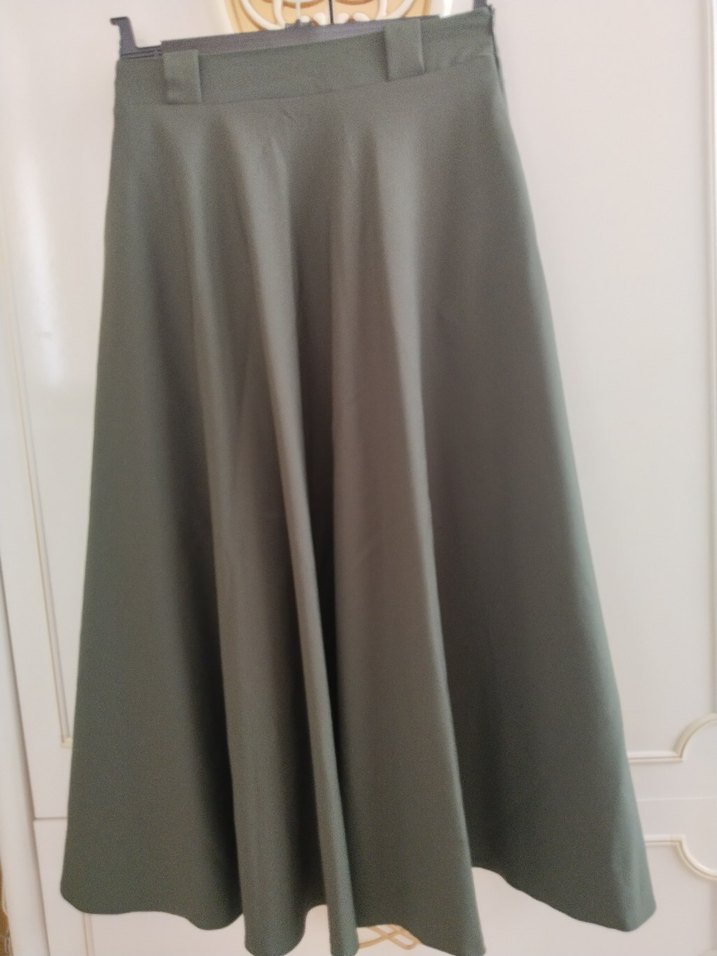 Drapeli uzun haki kadın eteği, rahat kesim ve yumuşak sentetik kumaştan üretilmiştir. Ofis kullanımı için sade ve desensiz tasarlanmıştır. astarli sorunsuz 1 defa giyildi hep yeni duruyor marka temsili seçildi