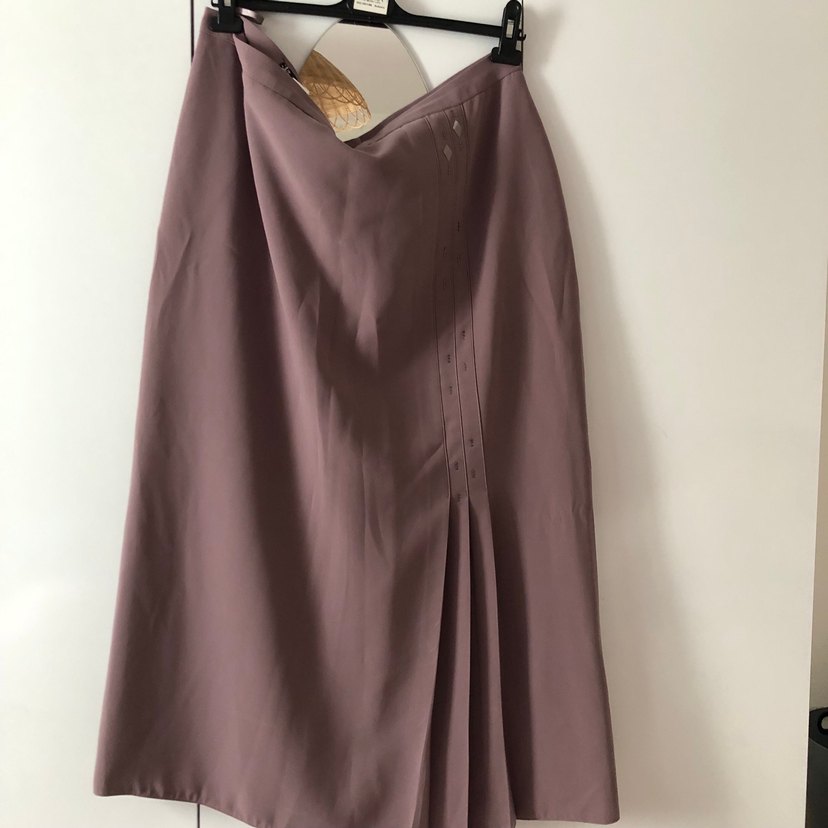 Drapeli, uzun ve bol kesimli kadın eteği, yumuşak ve ipeksi dokuda, gri tonunda. Desensiz tasarımı klasik ve vintage stillere uygun, ofis için ideal.