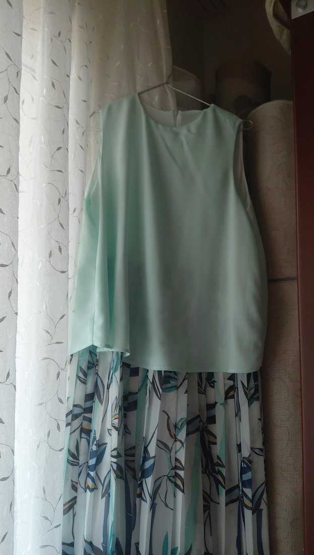 Bu kolsuz bluzu, straplez yakalı ve drapeli tasarıma sahip. Gevşek kesimi ve pastel yeşil rengindeki yumuşak sentetik kumaşıyla minimalist baskılı deseni bir araya getiriyor. Günlük kullanım için uygundur.