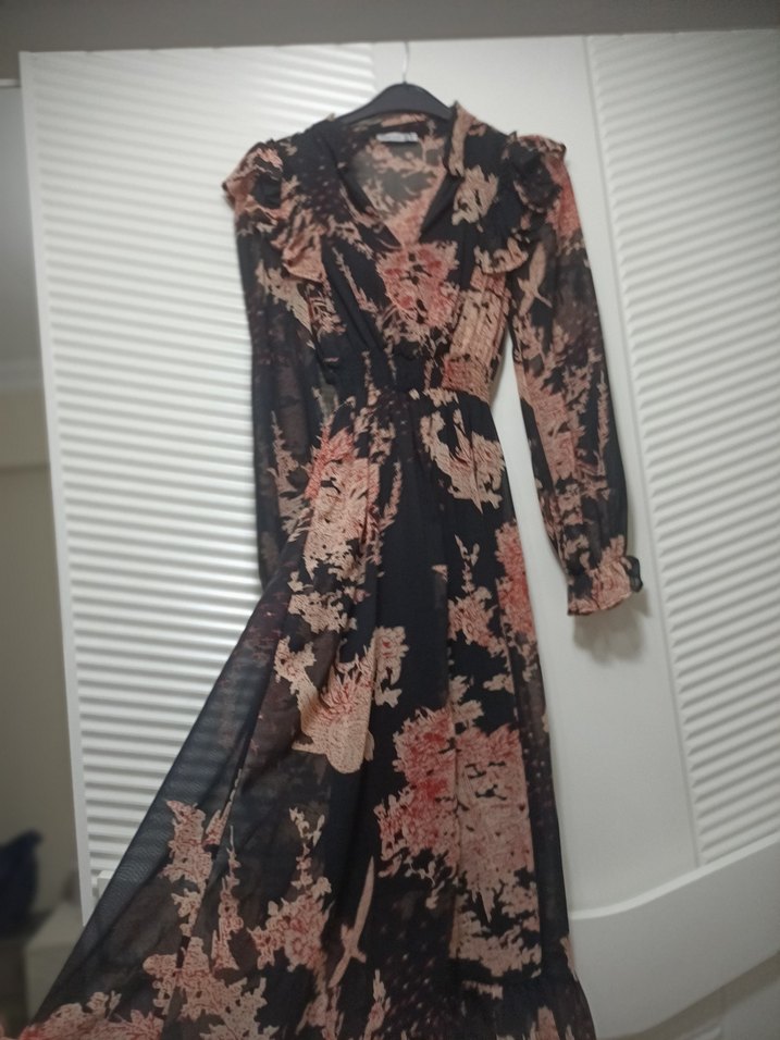 Drapeli Uzun Kol Bohem Uzun Elbise