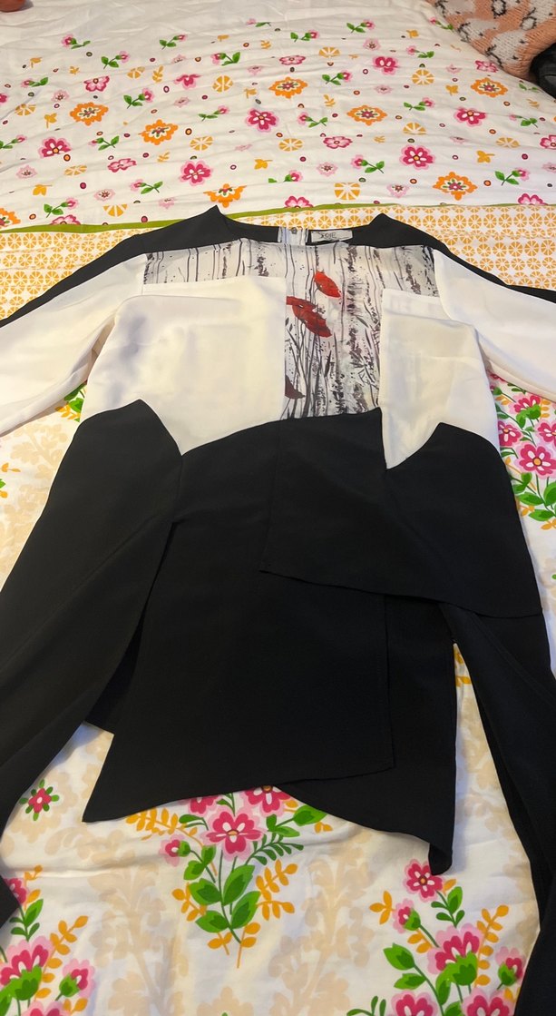 Üzeri tül detaylı iki yanından uzun parçası salınan tasarım kadın gömlektir.Defosuzdur.