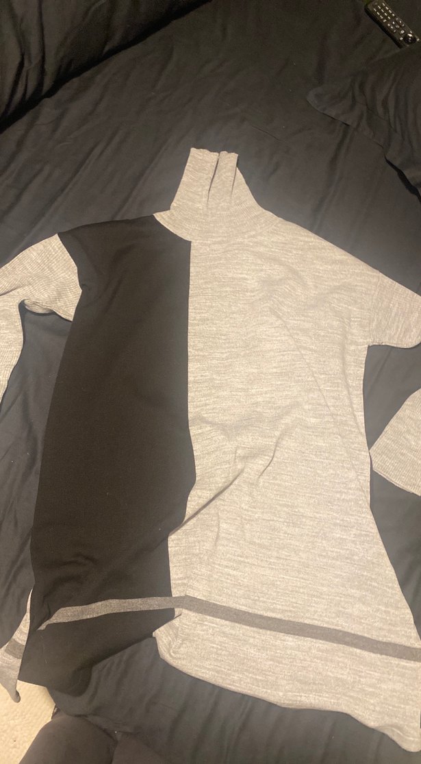 Drapeli, uzun kollu, boğazlı, gri ve siyah renklerde, keten karışımlı, midi uzunlukta kadın triko. Sade ve şık tasarım.Kalın çoraplarla elbise olarak kullanabilirsiniz şık hafif triko kullanışlı tertemiz durumdadır