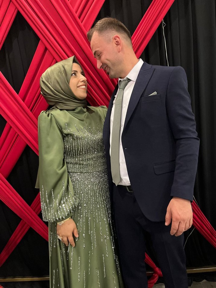 Drapeli Uzun Kollu Haki Tesettür Nişan Elbisesi