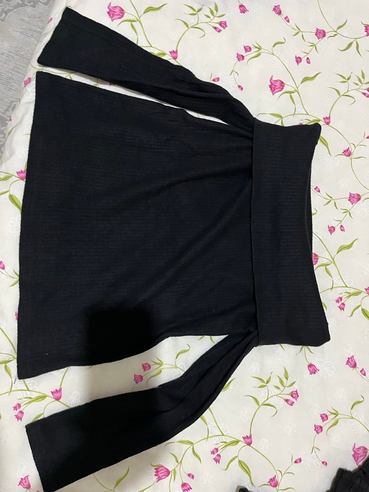 Yumuşak sentetik kumaştan, drapeli tasarıma sahip, midi uzunlukta siyah fitted. Günlük rahatlık için ideal, minimalist tarzda.