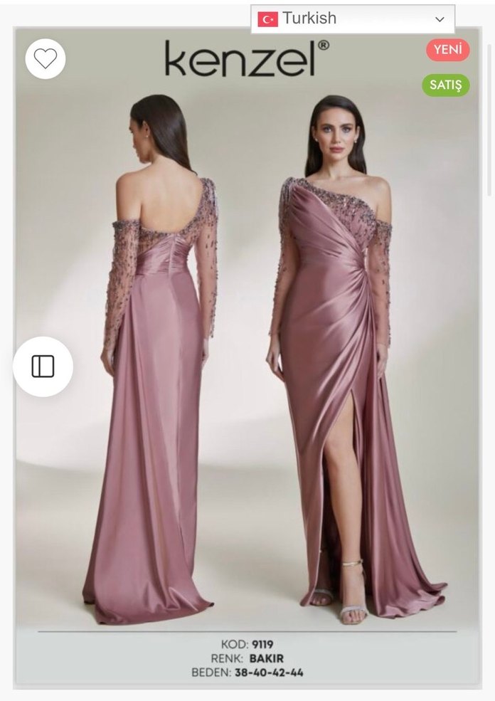 Drapeli Uzun Kollu Straplez Kenzel marka Abiye Elbise