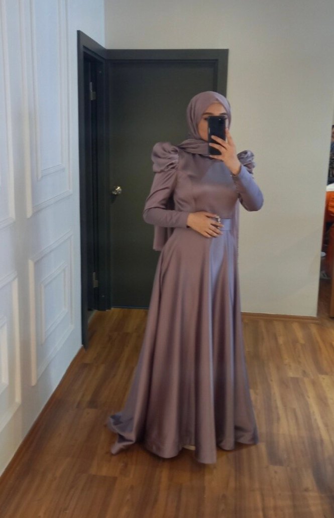 Drapeli Uzun Kollu Tesettür Abiye Elbise