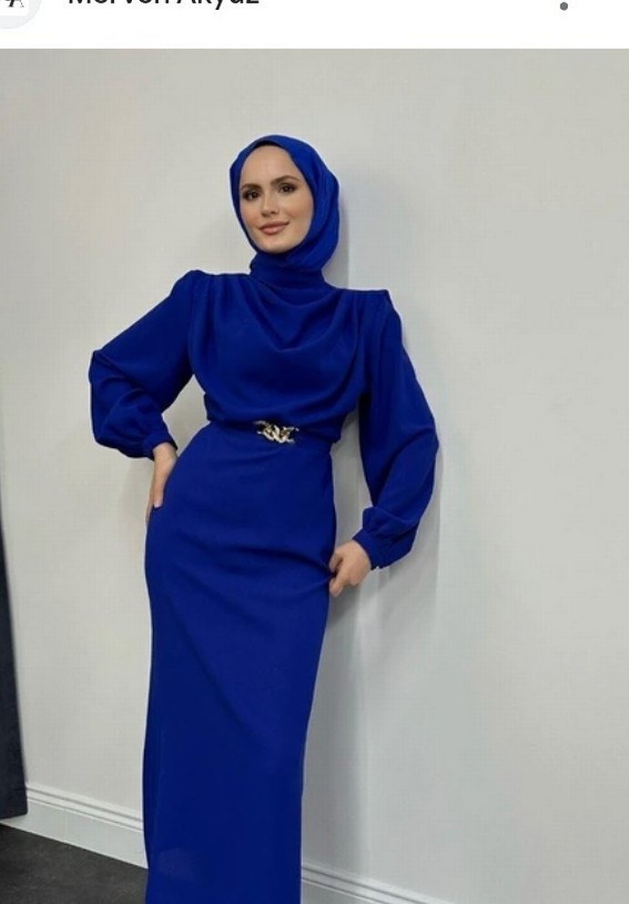 Pastel mor renkte, drapeli yüksek yakalı ve uzun kollu, bol kesim modern klasik tarzda uzun elbise. Desensiz tasarımıyla ofis için mütevazı ve göz alıcı bir seçenek.