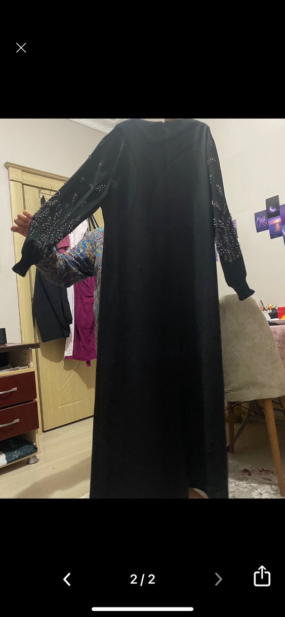 50 beden Drapeli detaylara ve desenli uzun kollara sahip, bol kesim uzun siyah elbise. Yüksek yakalı, günlük kullanım için sade gotik tarzda.