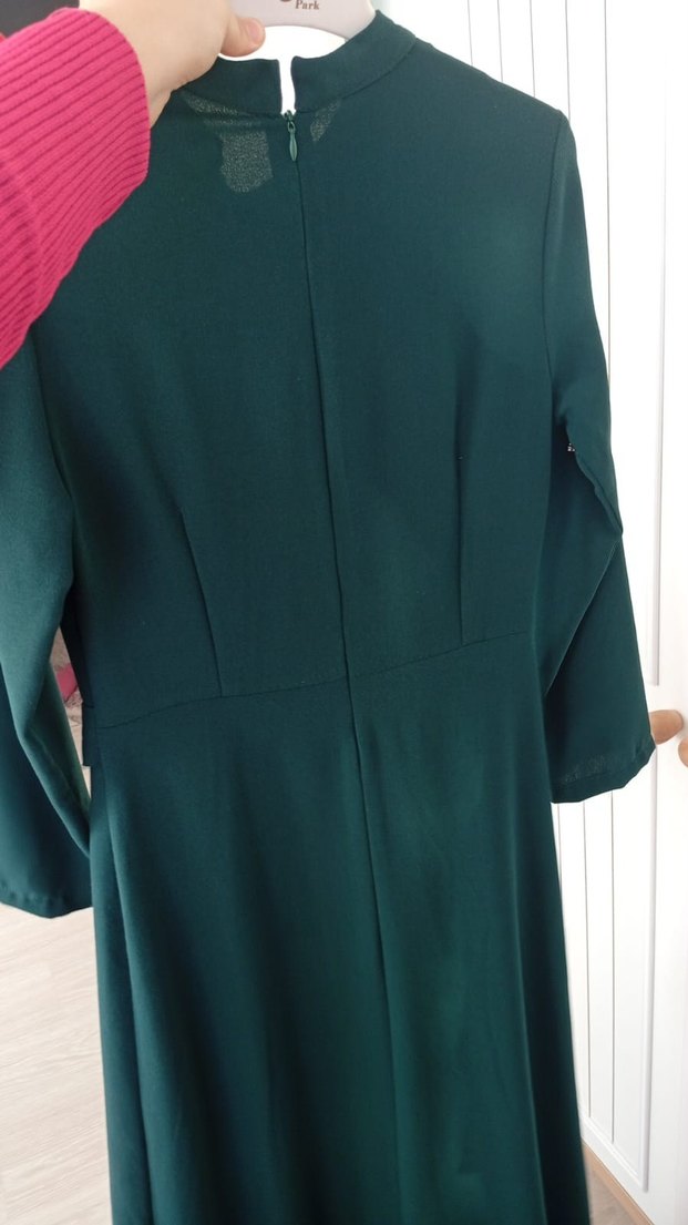 Drapeli Uzun Yeşil Kadın Elbise