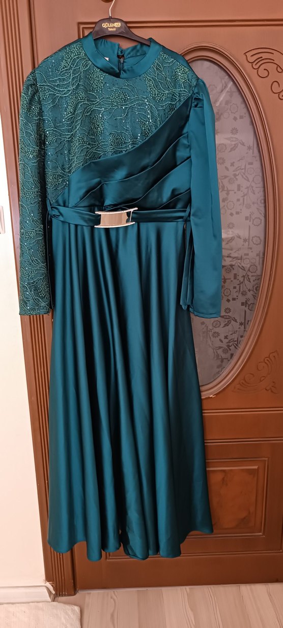 Drapeli tasarımı, desenli uzun kollu ve straplez yakasıyla uzun abiye elbise. Kemer detayı ve modern klasik kesimi vardır. bı defa giyilde temiz şık bı abiye 48 beden ama beli biraz daha ince olan 50 bedenlilerede olur