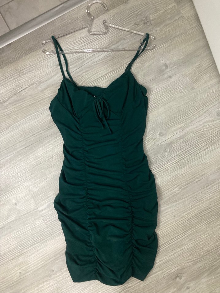 Drapeli, ince askılı ve V yakalı bu yeşil midi elbise, romantik akşamlar için uygundur. 1 kere kullanıldı