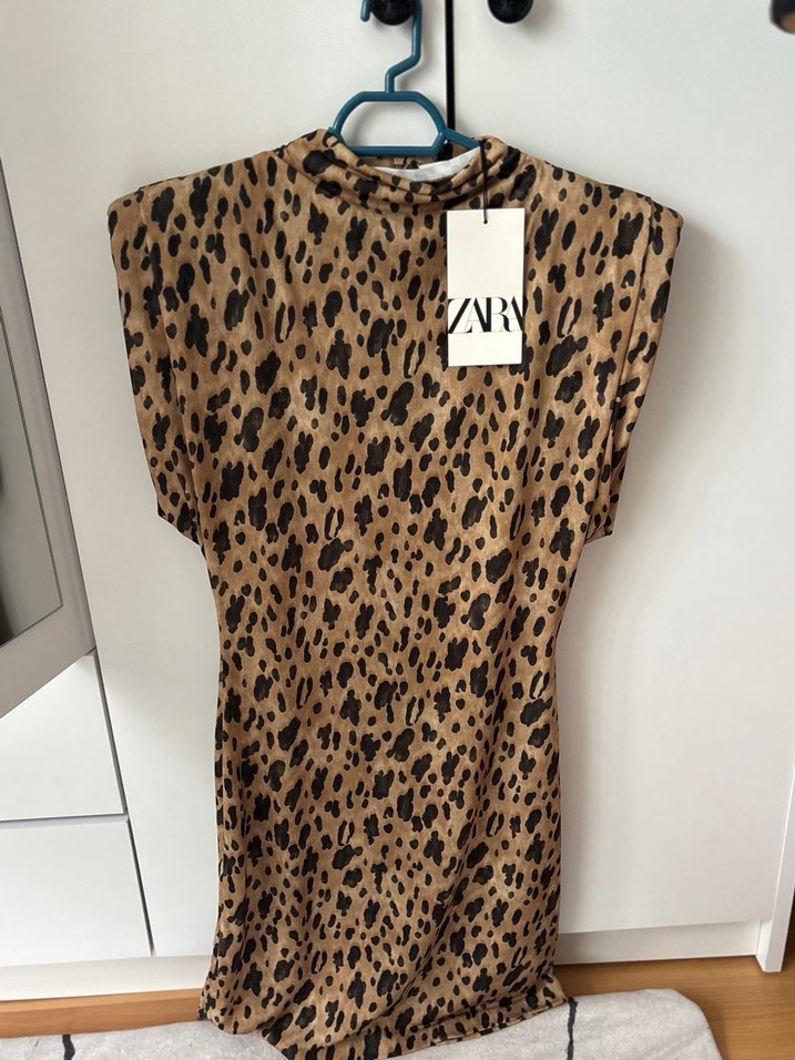 Etiketli orjinal Zara hiç giyilmedi denemedim bile :)Drapeli tasarıma sahip, V yaka ve kısa kollu, kahverengi baskılı midi elbise. Rahat kesimli ve sentetik kumaştan üretilmiştir.