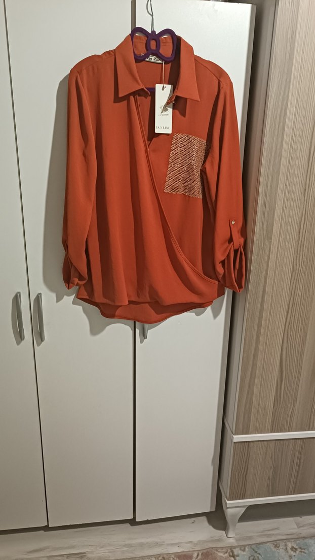 Uzun kollu, bol kesim gömlek. Drapeli tasarım ve V yaka. Parlak desenli cep detayı bulunur. Yumuşak sentetik kumaştan, günlük kullanıma uygun.