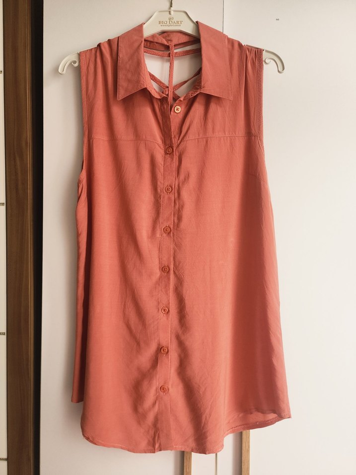 V yaka, kolsuz, drapeli tasarıma sahip, yumuşak sentetik kumaştan yapılmış bol kesim pastel bej renk bohem kadın bluz. somon rengi. MARKA TEMSİLİDİR