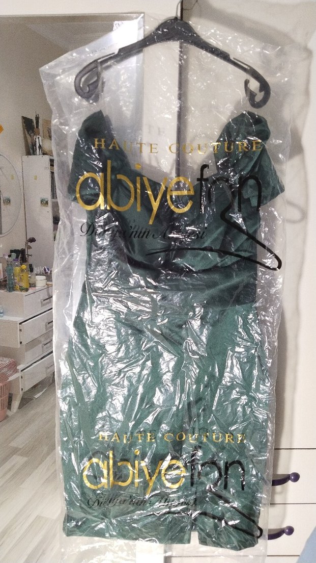 Drapeli, yeşil abiye elbise. Baskılı desene sahip, dar kesim. 1 kere kullanıldı. tek sorunu fermuar yani küçük lekeler ama çıkacağını düşünüyorum, sabun lekesiydi. abiyefon ürünüdür