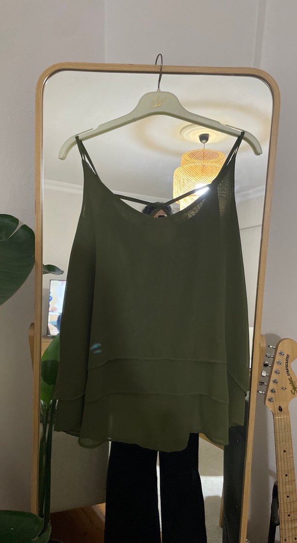 Drapeli Yeşil Askılı Kadın Bluz