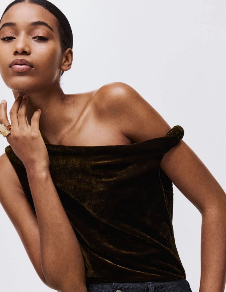 Bu kadın bluz, drapeli tasarımı ve ince, satenimsi kumaşıyla dikkat çeker. Fitted kesimi ve kolsuz yapısıyla modern ve iddialı bir görünüm sunar. Romantik akşamlar için uygundur. Yeni etiketlidir.