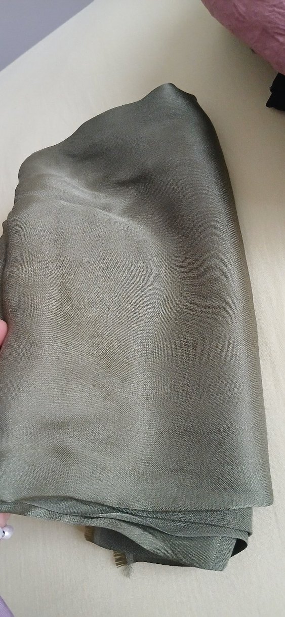 Kadın şalı, yumuşak sentetik kumaştan yapılmış, drapeli tasarıma sahip yeşil renktedir. Minimalist ve normcore stile uygundur.
