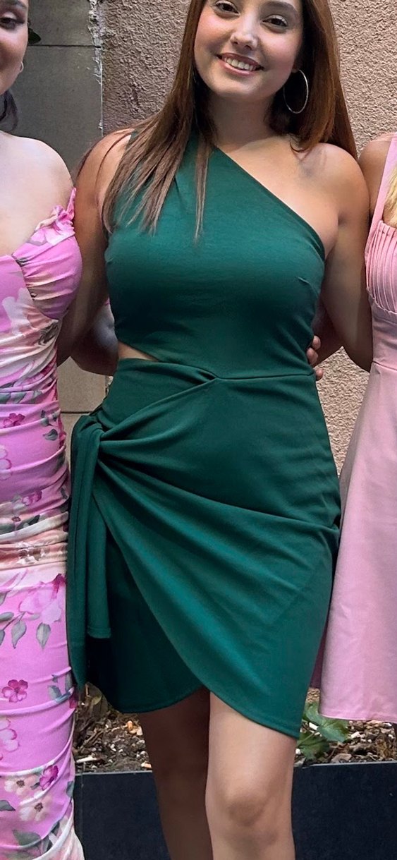 Drapeli, straplez ve askılı kollara sahip, vücuda oturan yeşil midi abiye elbise, gösterişli partiler için uygundur.
