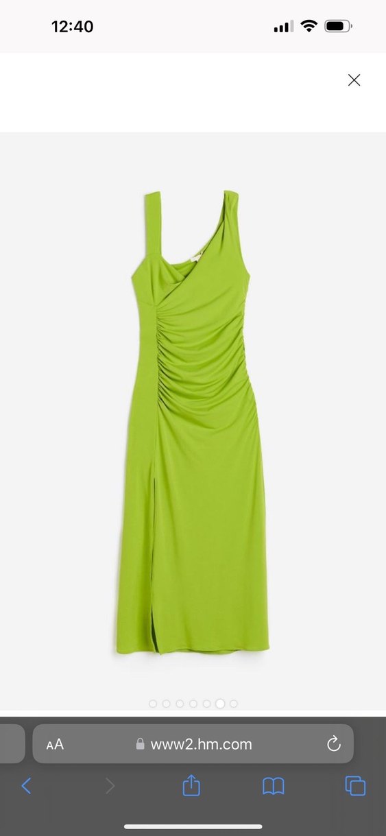 Drapeli, askısız, yeşil uzun elbise, ve vücuda oturan kesim. Pürüzsüz. Sadece 2 saat giyildi dolabımı boşalttığım için uygunu koyuyorum