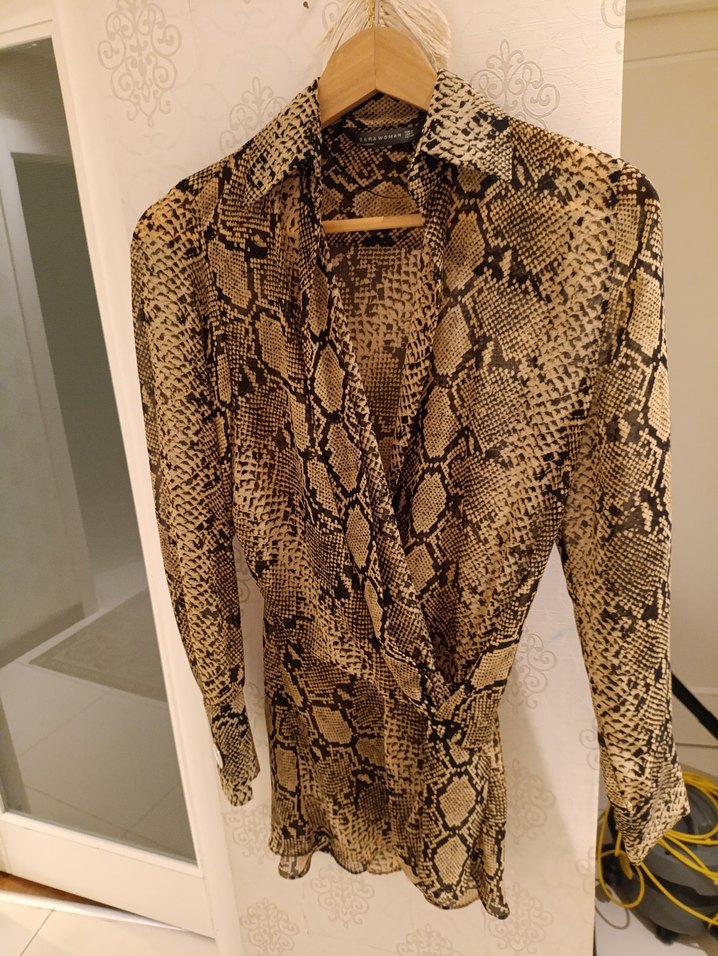 Drapeli yılan desenli, uzun kollu ve V yakalı kruvaze kahverengi kadın bluz. Şifon yumuşak kumaştan, sokak modasına uygun şık tasarım. Hem spor hem klasik kombinlenebilir. Kalibi dar ben o yuzden hic giymedim, medium yaziyor ama small bedene uygun.