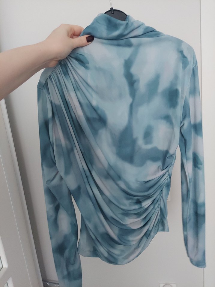 Drapeli Yüksek Yakalı Batik Desenli Kadın Bluz