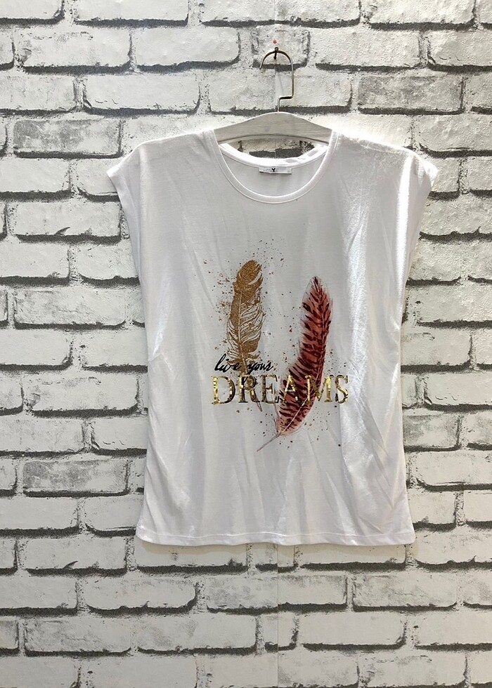Beyaz Baskılı T-shirt | Pamuklu
