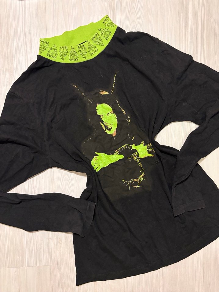 Siyah baskılı, uzun kollu ve boğazlı hamile tişörtü. Gevşek kesim, koyu renk ve grunge punk tarzında, parti için uygun. Amerika'dan alındı. Kullanılmadı. M beden. Fiyat son. tags / goth / gothic / y2k / vintage / 90s / 2000s / retro / grunge / coquette / cyber / softgirl / streetwear / indie / modeloffduty / baddie / mcbling / fairycore / early2000s / kitsch / nostalgic / bratzvibes / babygirl / itgirl /gotik / emo / scenemo / scene / bratz / barbie / killstar / shein / ed hardy / juicy