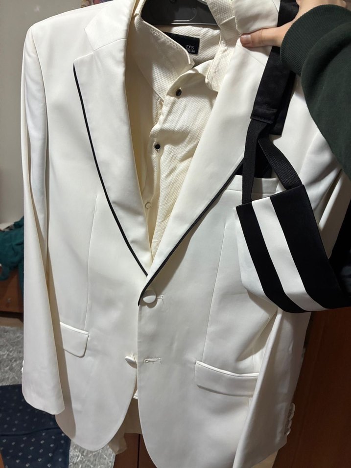 D'S damat ceremony beyaz damatlık XS beden kuşağı ve gömleği dahil, gömleğinin bazı düğmeleri beyaz bazıları siyah, kendisinden öyle çünkü yedek düğmesi de beyaz. Yıkayıp göndereceğim.pantolon mevcut değil