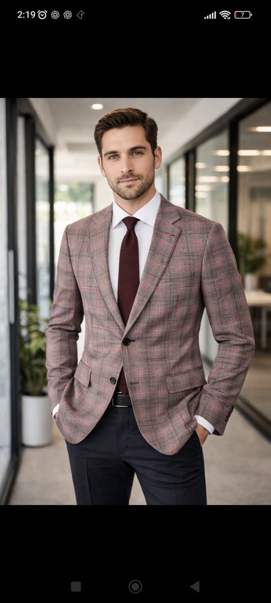 kareli, düğmeli erkek blazer ceketi, normal boy ve regular fit kesimlidir. Notch yaka ve uzun kolludur, ofis ve gündelik sokak stili için uygundur.