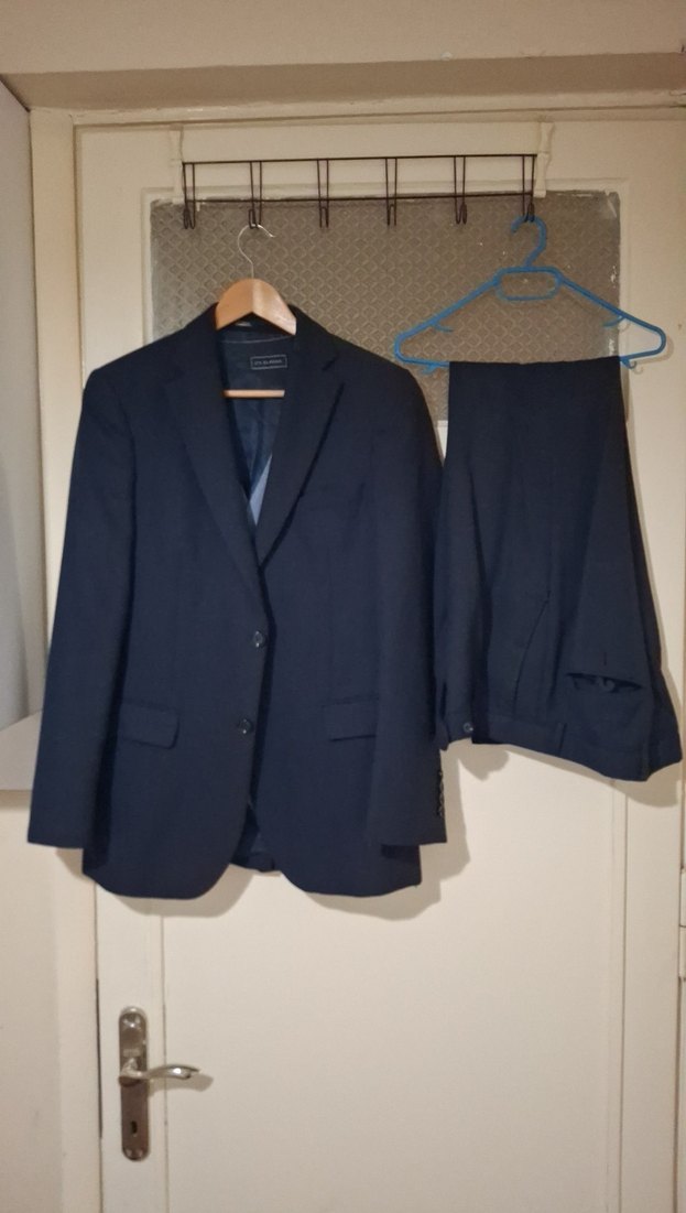 Lacivert renkte, klasik kesim, uzun kollu ve düğmeli erkek ofis takım elbisesi. Düz ve iş ortamına uygun tasarımı ile öne çıkar. ️