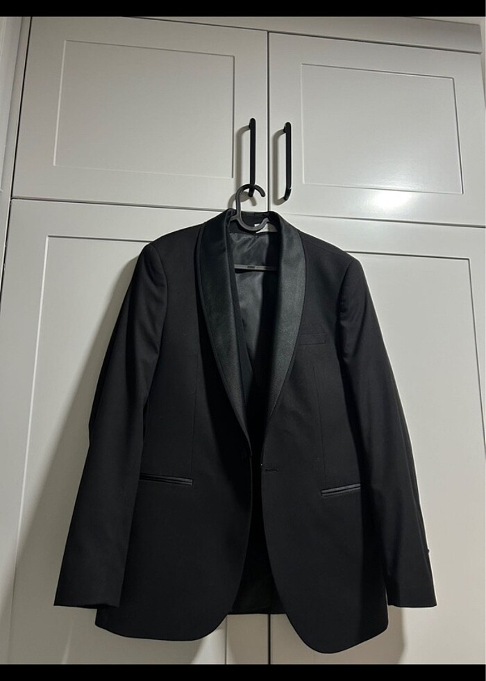 Sadece nikahta giyildi hiçbir sorunu yoktur. Pantolon, yelek, ceket, papyon, ayakkabı, ceket mendili satılıktır. Ceket ve pantolon 48 beden yelek 50 bedendir. Sadece pantolonun boyunda ayarlama yapıldı. Ayakkabı 40 numaradır. Fiyatın içine hepsi dahildir. DAMAT MAĞAZASINDAN ALINDI toplam fiyat alındıgında 20.000₺ di