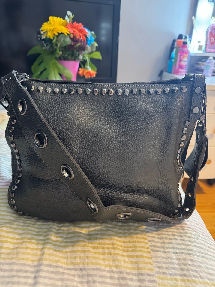 Gümüş deri, tokalı kayışlı kadın çanta. Nakış ve metal perçin detayları bulunur. Gotik, bohem ve retro tarzlara uygundur. Deformesi yok. Etiketi üstünde hiç kullanılmadı. Fiyatta yardımcı olurum