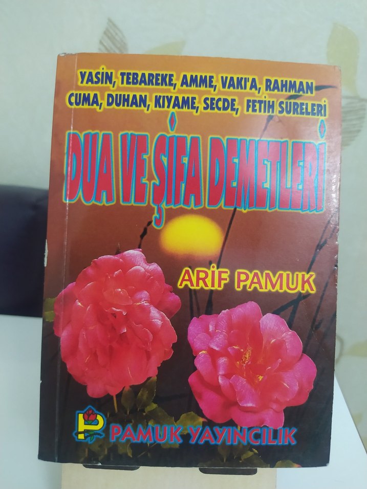 Arif Pamuk'un 'Dua ve Şifa Demetleri' kitabı, Yasin, Tebareke, Amme, Vakı'a, Rahman gibi çeşitli dualar ve şifa surelerini içerir. Kitapta altı çizili veya yırtık bir yer bulunmamaktadır.