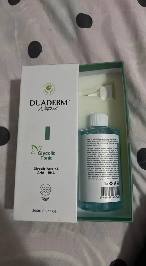 Duaderm Glycolic Tonik, %5 glikolik asit ve AHA+BHA içerir. Termal su ile cildi nazikçe eksfoliye eder ve yeniler. 200ml.