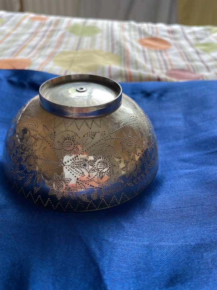 ÜZERİ DUALI İÇİ DUALI ANTİKA ŞİFA TASI Altı ve içi yazılı 1940-1950lerden çinteman Antika Pirinç Muhteşem Şifa Tası.Teklif verebilirsiniz El işlemeli ayet yazılı şifa tası Kusursuz ve değerli bir parça Damgaya bakmak için arkası temizlenmiştir, tamamen temizlenmesi gerekir. Çap:11cm Yükseklik:4,5cm ;313 gram ağırlık #şifa #tas #şifatası #antika #eski #pirinç işçilikli antika şifa tası desenlere sahip parlak altın renkli, geleneksel tarzda bir kase. Detaylı çiçek motifleri ve pürüzsüz yüzeyi bulunur. ️
