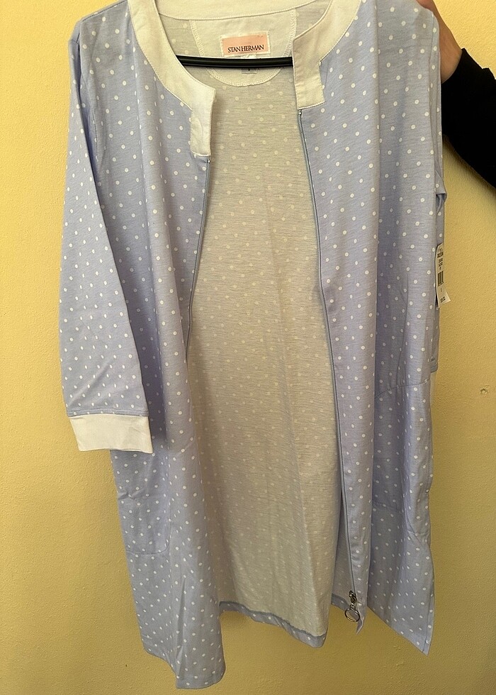 Dubai’den Sabahlık aldım doğumdan sonra kullanmak için ama kullanmadım etiketi üzerinde cepli ve fermuarlı
