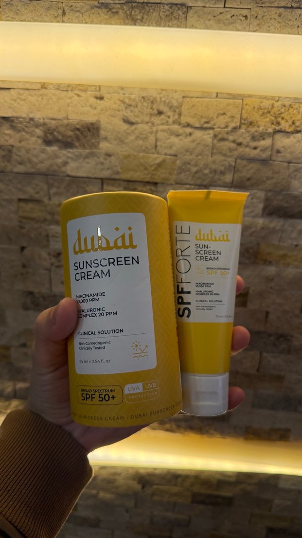 Dubai SPF 50+ güneş koruyucu krem, geniş spektrumlu koruma sağlar. Niacinamide ve hyaluronik kompleks içerir, günlük kullanıma uygundur.
