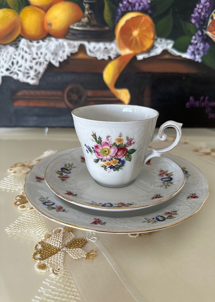 Seltmann damgalı incecik çok zarif fincan ve pasta tabağı