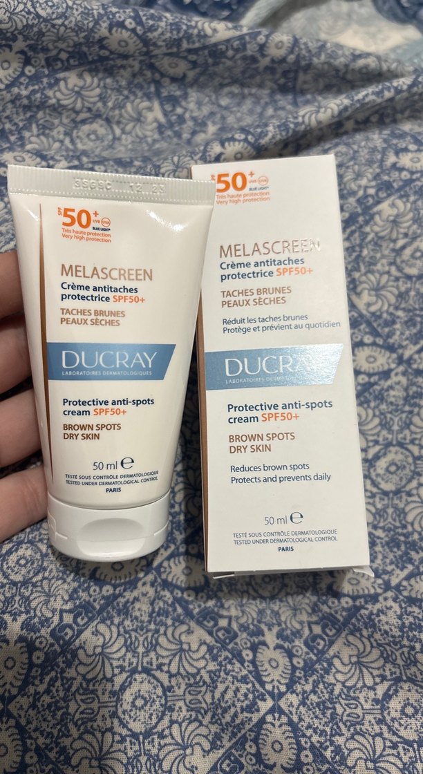 Ducray Melascreen SPF50+ krem, kuru cildi kahverengi lekelerden korur ve lekelerin görünümünü azaltır. Günlük koruma sağlar. ☀️