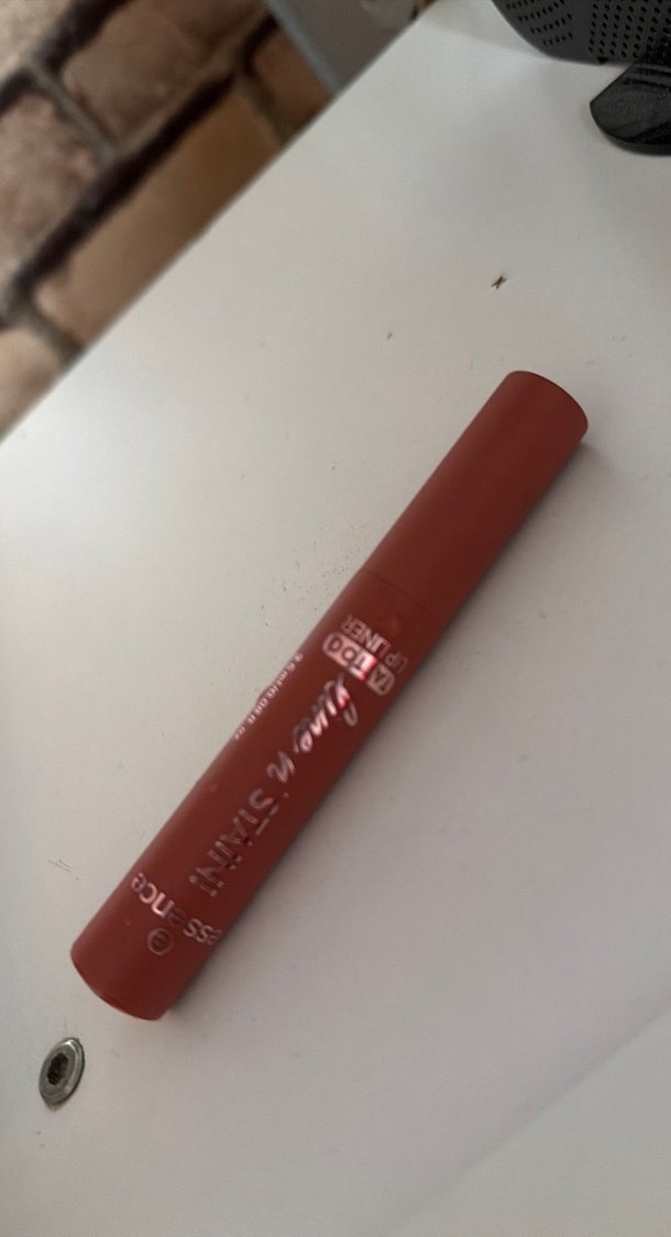 Parlak bitişli bej ruj, "STAIN!" yazısıyla kalıcı etkisi vurgulanmıştır. Kalıcı yok gibi çıkmıyor rengini sevmedim bir kez kullandım