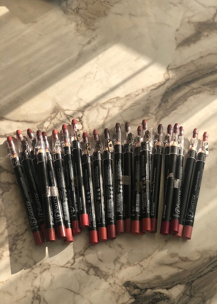 Flormar dudak kalemi isteyene elimde olan renk kodlarını renkleri ile birlikte detaylı fotoğraf atabilirim kozmetik ürünlerimde en az 3 ve üzeri satış yapmaktayım lütfen 1 adet için sipariş vermeyin fiyatlarım zaten uygundur.