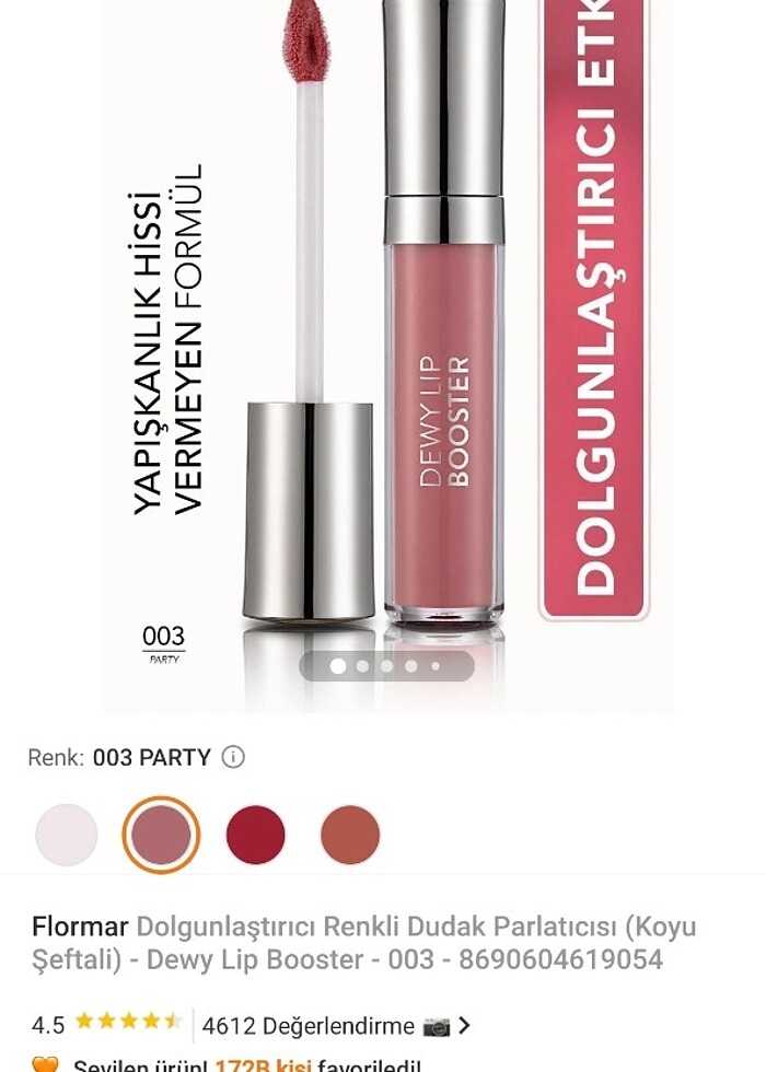 Ürün açılmamıştır. Şeftali ton, dolgunlaştırıcı etkisi olan, yapışkan his bırakmayan bir dudak parlatıcısı. Rengi günlük kullanıma çok uygun.